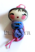 Demonya creates pendants, earrings and things with handmade mini kokeshi dolls.