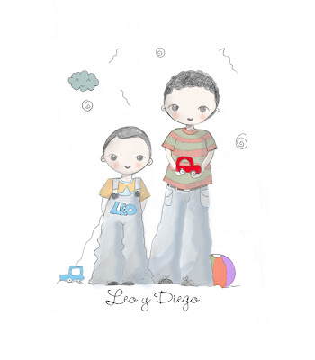 Ilustración personalizada para decorar la habitación de estos hermanitos tan guapos.
